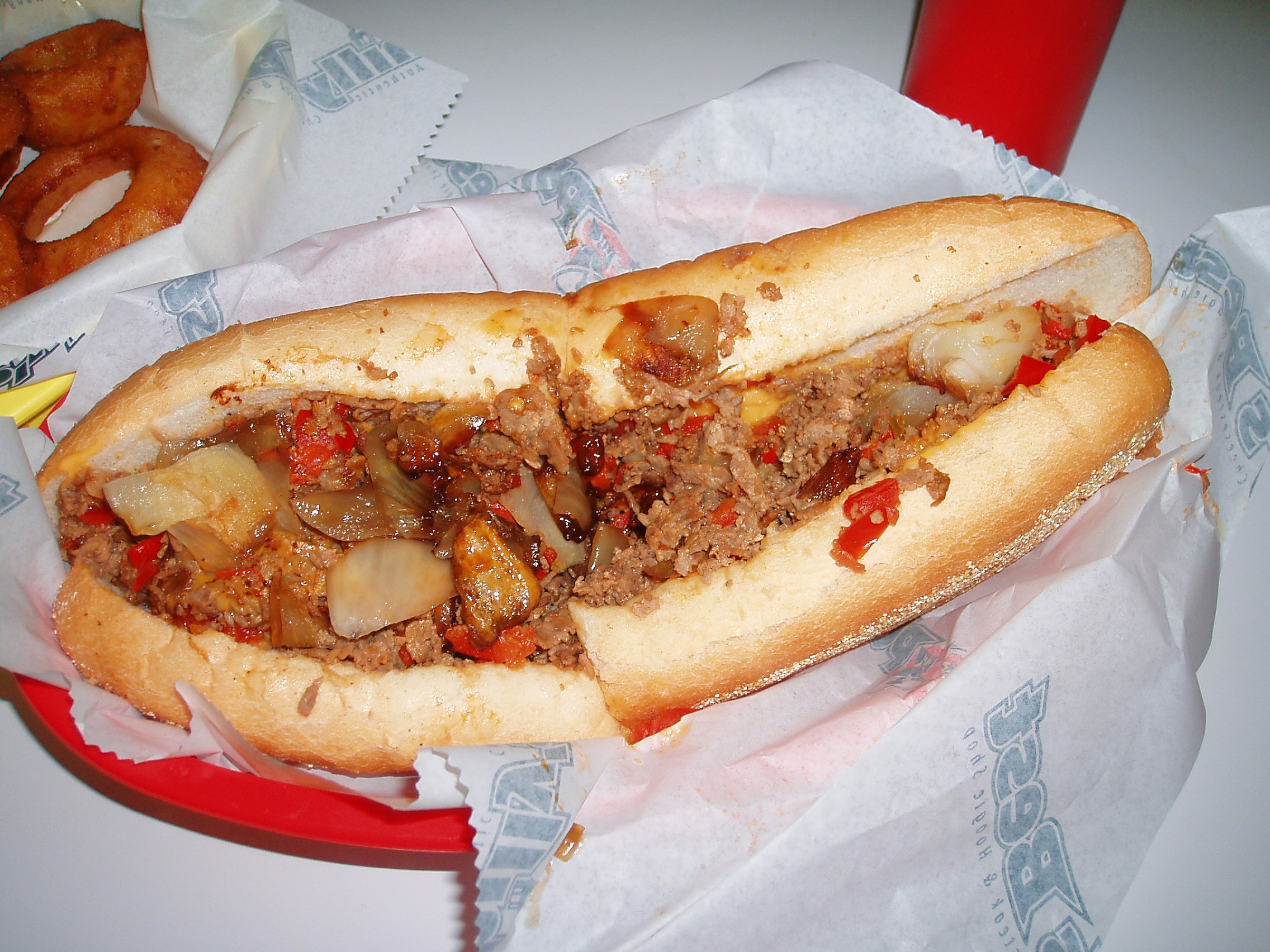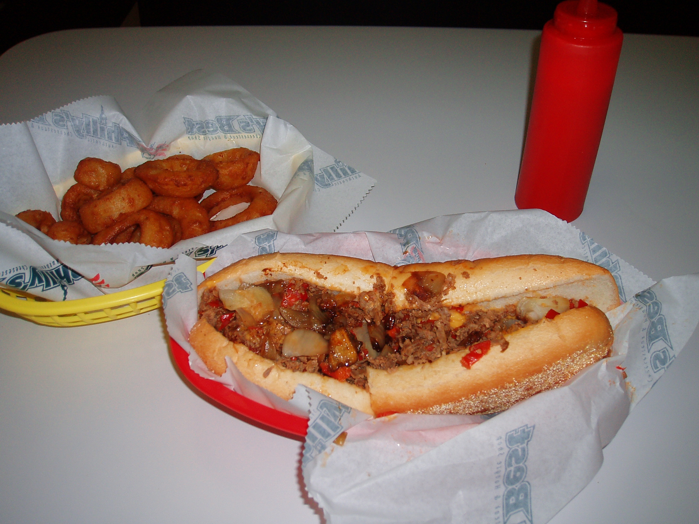 finally!!! i place with some authentic philly cheesesteaks!!! they got cheese whiz and Amoroso rolls shipped straight from philly. cheesesteaks run ya about $5.50.